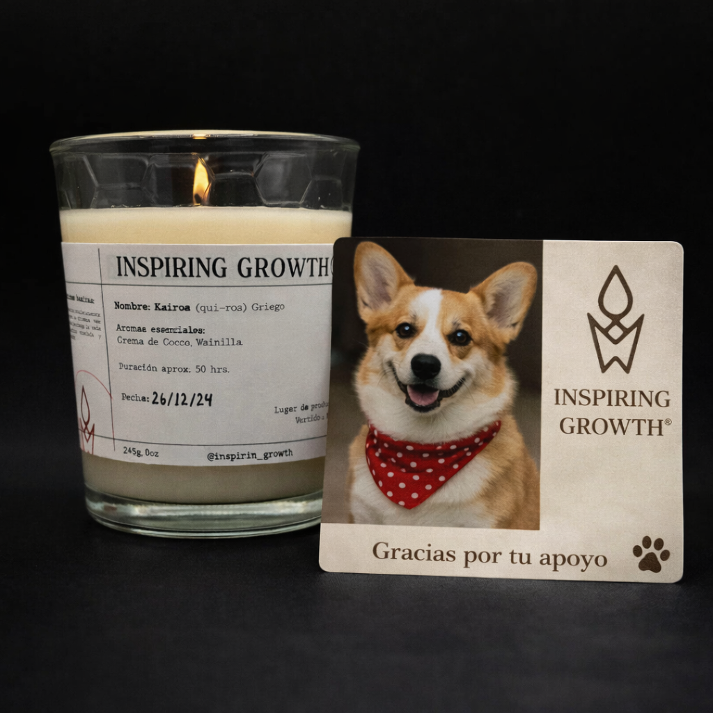Esta vela forma parte de la colección Paws of Light, una edición especial de Inspiring Growth creada para apoyar directamente el rescate y bienestar de perritos en situación vulnerable. Al elegirla, también contribuyes a convertir un gesto de luz en ayuda real.