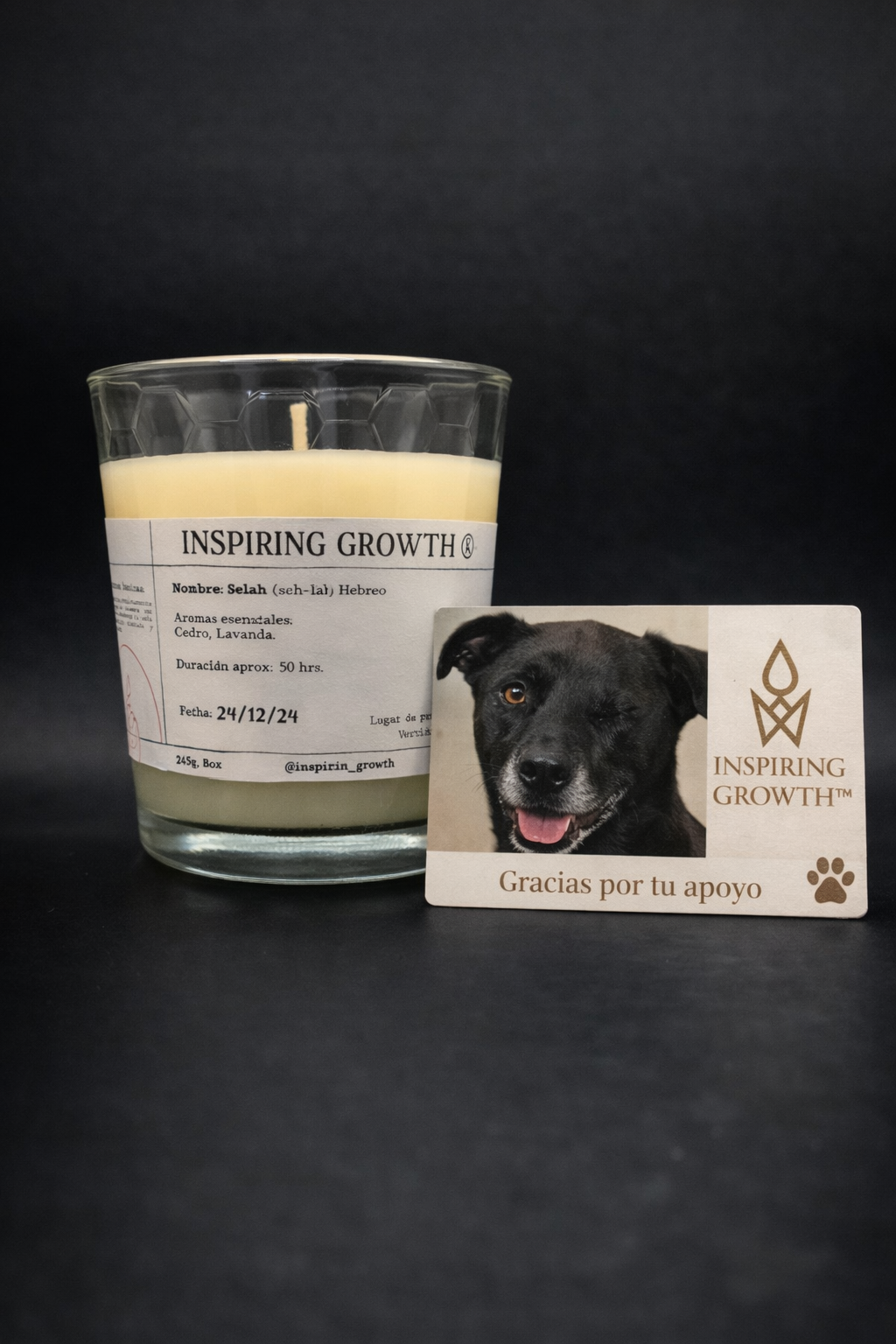 Esta vela forma parte de la colección Paws of Light, una edición especial de Inspiring Growth creada para apoyar directamente el rescate y bienestar de perritos en situación vulnerable. Al elegirla, también contribuyes a convertir un gesto de luz en ayuda real.